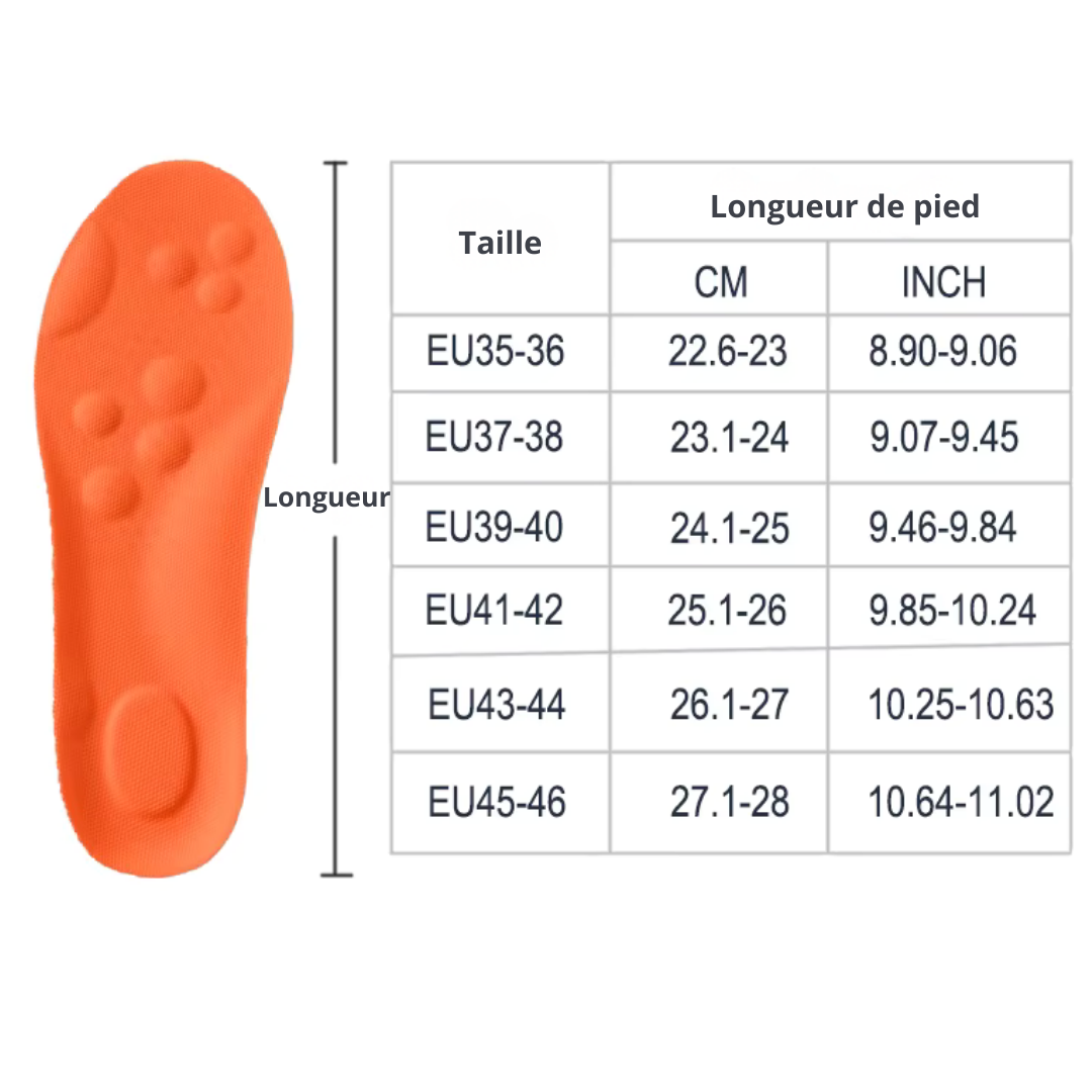 Les semelles sont conçues pour être ajustées : il suffit de les découper selon les repères pour qu'elles s’adaptent parfaitement à vos chaussures.
